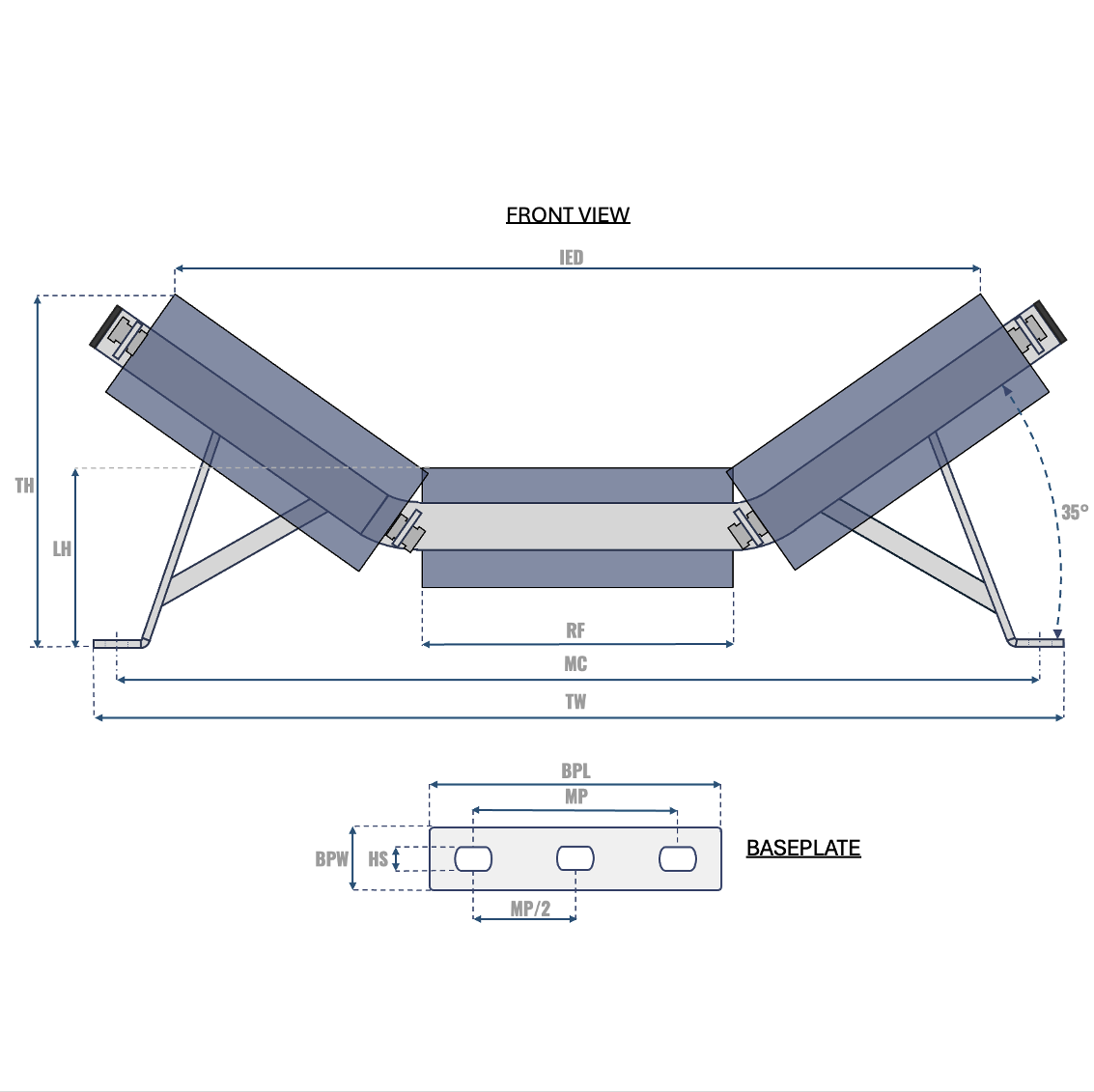 PRODUCT TYPE: 3-ROLL TROUGHING IDLER FRAME