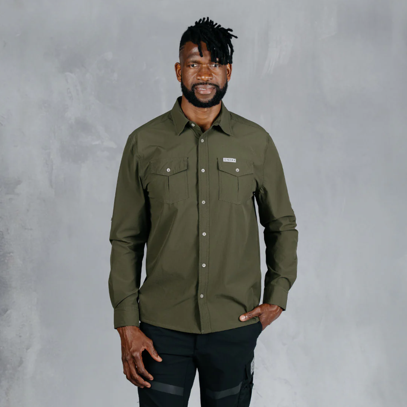 W.O.R.K Ripstop 4 Way Stretch L/Sleeve Shirt Dark Olive